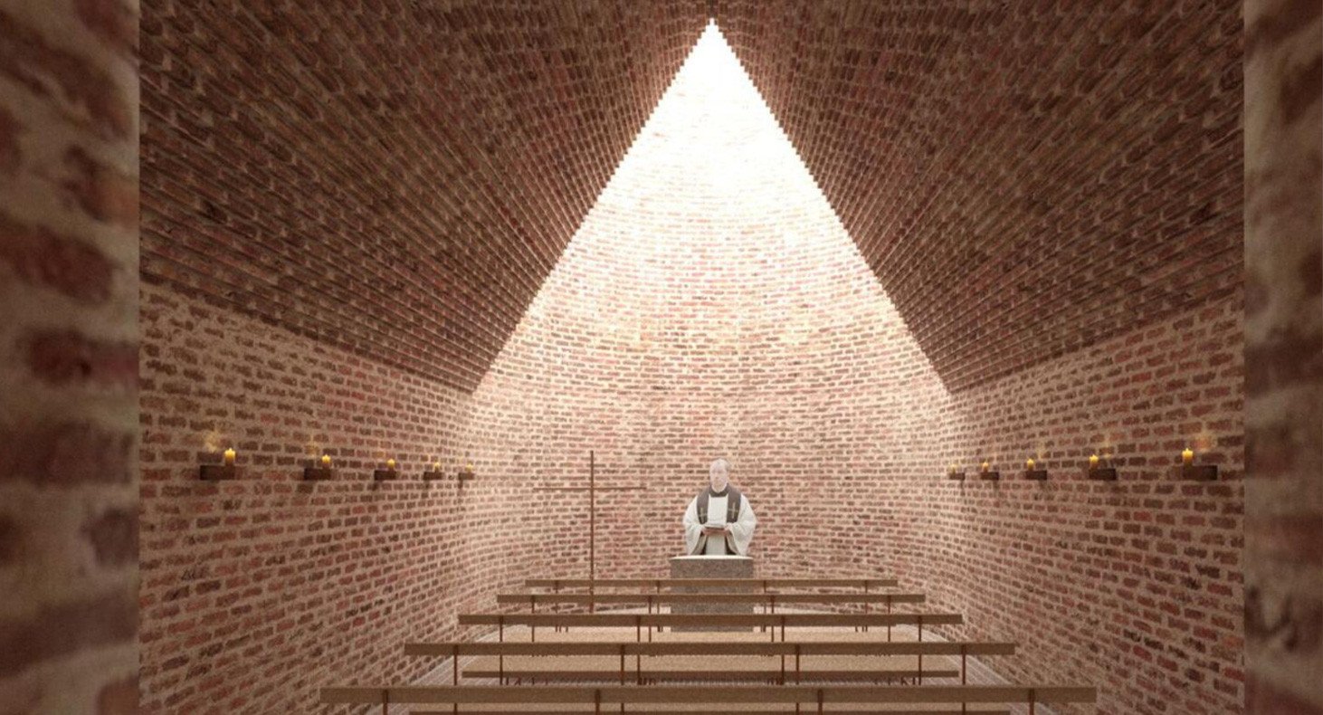 Een opvallend element is een speciale zuil waarin een kapel is ondergebracht. Daar valt het licht van bovenaf binnen, wat zorgt voor een serene en intieme sfeer.
