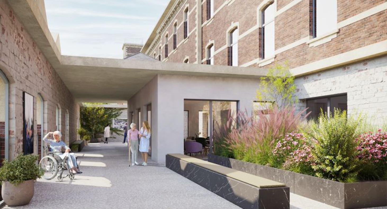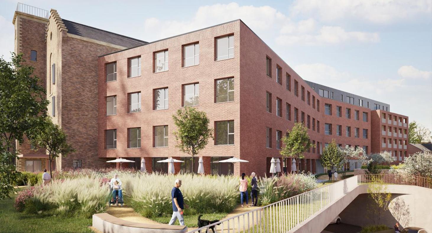 Achter de majestueuze gevel en de imposante torens van het historische Picpussen kloostergebouw, dat met zorg en respect behouden blijft, verrijst een nieuw woonzorgcentrum met maar liefst 90 kamers en aansluitend 39 assistentiewoningen. Dit is niet zomaar een bouwproject, dit is een eerbetoon aan erfgoed, gekoppeld aan een visie van toekomstig comfort en zorg.